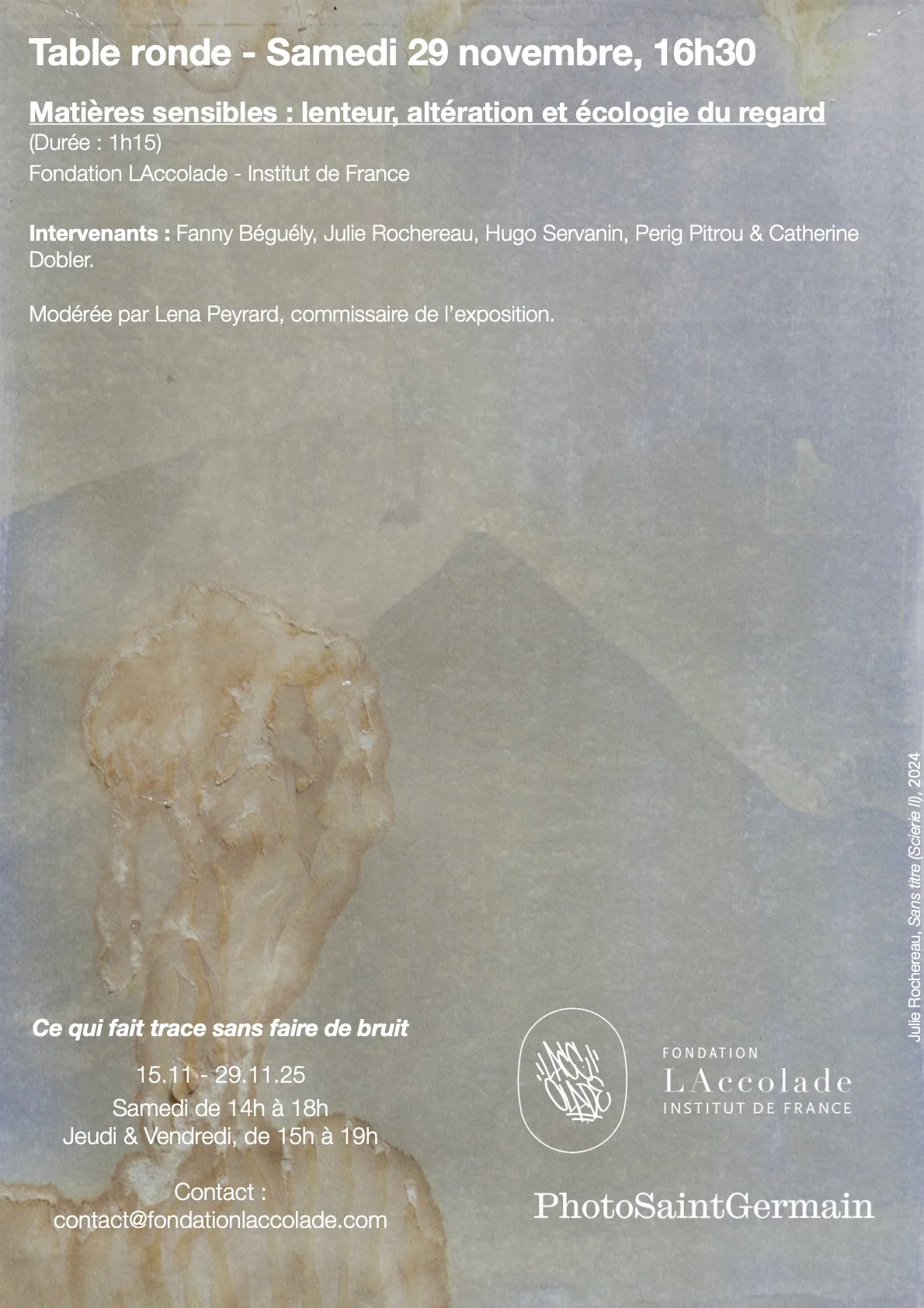 Avec la participation de Ninon Hivert, artiste exposante, Valérie Cazin, galeriste et directrice de la Galerie Binome, Matthieu Rivallin, responsable des collections photographiques de la Médiathèque du patrimoine et de la photographie, Catherine Dobler, directrice et fondatrice de la Fondation LAccolade.